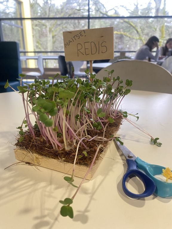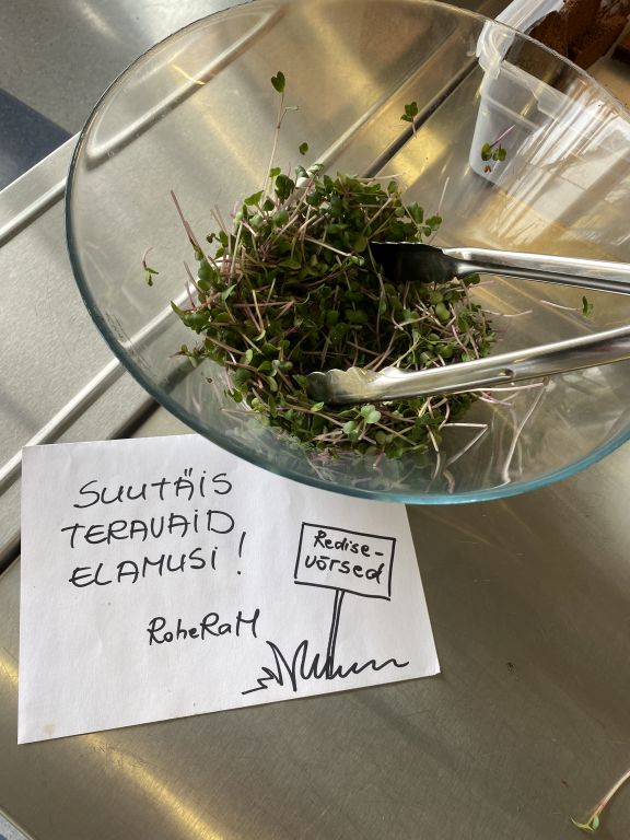 Teisipäeval nautisime kooliperega taimset koolilõunat ning vitamiini ampsudeks olid laudadele sätitud värsked võrsed, mille panid kasvama Meelika Karu (9.b), Iris Lukk (9.c), Markus Samuel Vaikjärv (9.b).